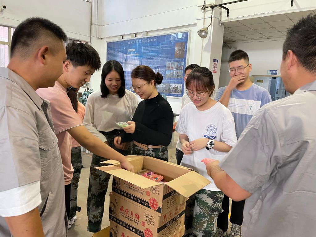 一份小小的月饼,几句暖心的问候,表达了机电学院对金工实习学生的中秋祝福,使远离家乡的同学们倍感温暖和关心!