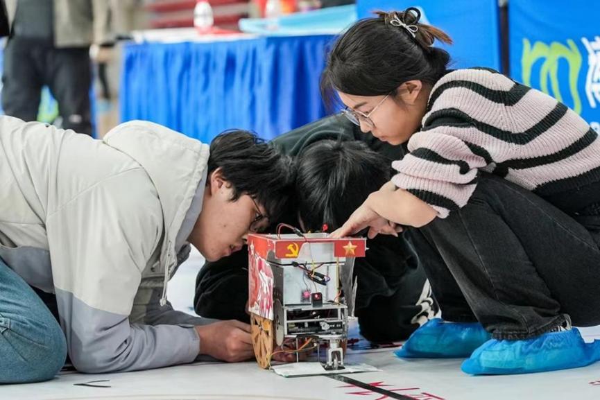经过初赛,创新实践,决赛三个环节的激烈角逐,同学们沉着冷静,充分发挥在校所学计算凸轮本领,利用激光切割机床制作凸轮组装调试,并现场设计充电电路,充分展现了工程训练创新实践能力培养的成效,彰显了“专注坚持、精益求精”的工匠精神,最终克服重重难题,稳扎稳打,取得优异的成绩,实现该赛事奖项的历史性突破。